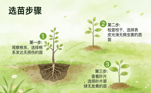a. 选苗:优先选择适合当地气候、土壤的本土树种(如北方选国槐、白蜡,南方选香樟、桂花),成活率更高;
